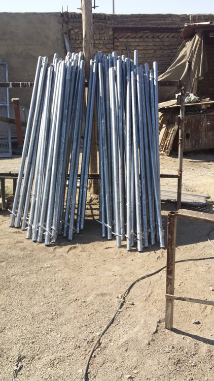 پایه فنس مدل تو پر ارتفاع 2/40 قطر ۴۵رنگ شده دارای قلاب ۲عدد وشاخک پایین و در پوش وزن ۹کیلو